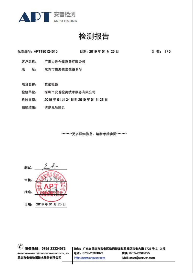 • 廣東力進倉儲設備有限公司 是國內專業從事倉儲貨架及倉儲配套設備集研發、生產、銷售、安裝于一體的綜合企業。公司實力雄厚、聲譽卓著,擁有先進的生產設備,尖端的生產技術和完善的售后服務;可滿足客戶不同的設計需求。 公司主要產品有:輕型貨架、中型貨架、重型貨架、貨架平臺、閣樓式貨架、懸臂式貨架、貫通式貨架、流利貨架、移動柜、(抽屜式)模具架、4S貨架、倉庫籠、工作臺、工具柜、工具車、零件柜、物流臺車及周邊設備。 力進 已為近千家中外企業,其中包括大批世界500強企業,國內上市公司及各行業領頭羊企業提供一流優質的貨架及相關服務,其中包括富士康、美的、尚野皮具、寶潔、百事可樂、TCL、雅新電子、梁氏集團等國內外著名企業。